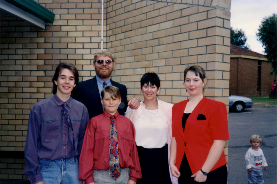 ![]() ich mit Ian, Jason, Maureen, Richelle und meinem 'Cousin' Mitchell (Foto 1992, Geraldton) |